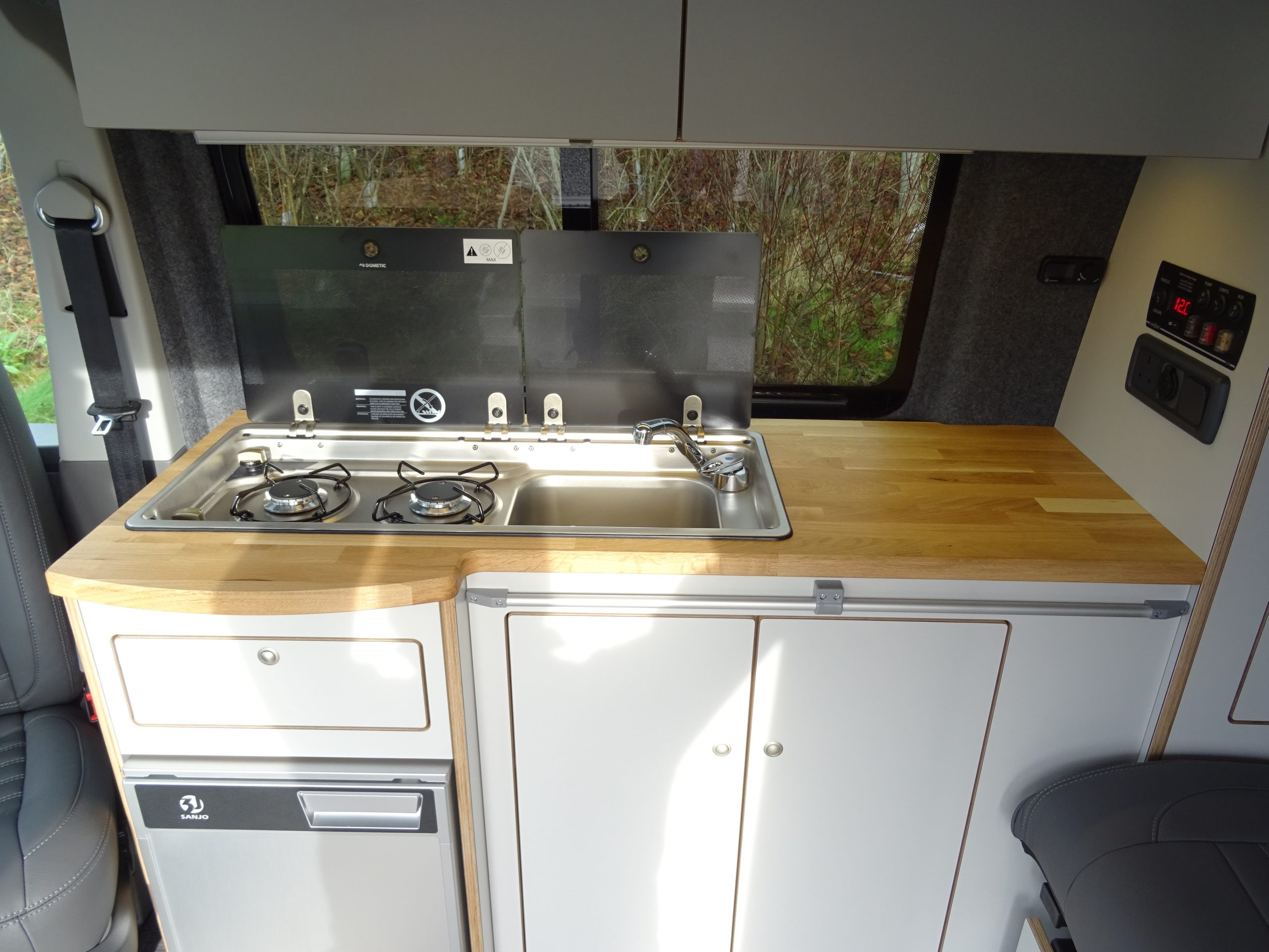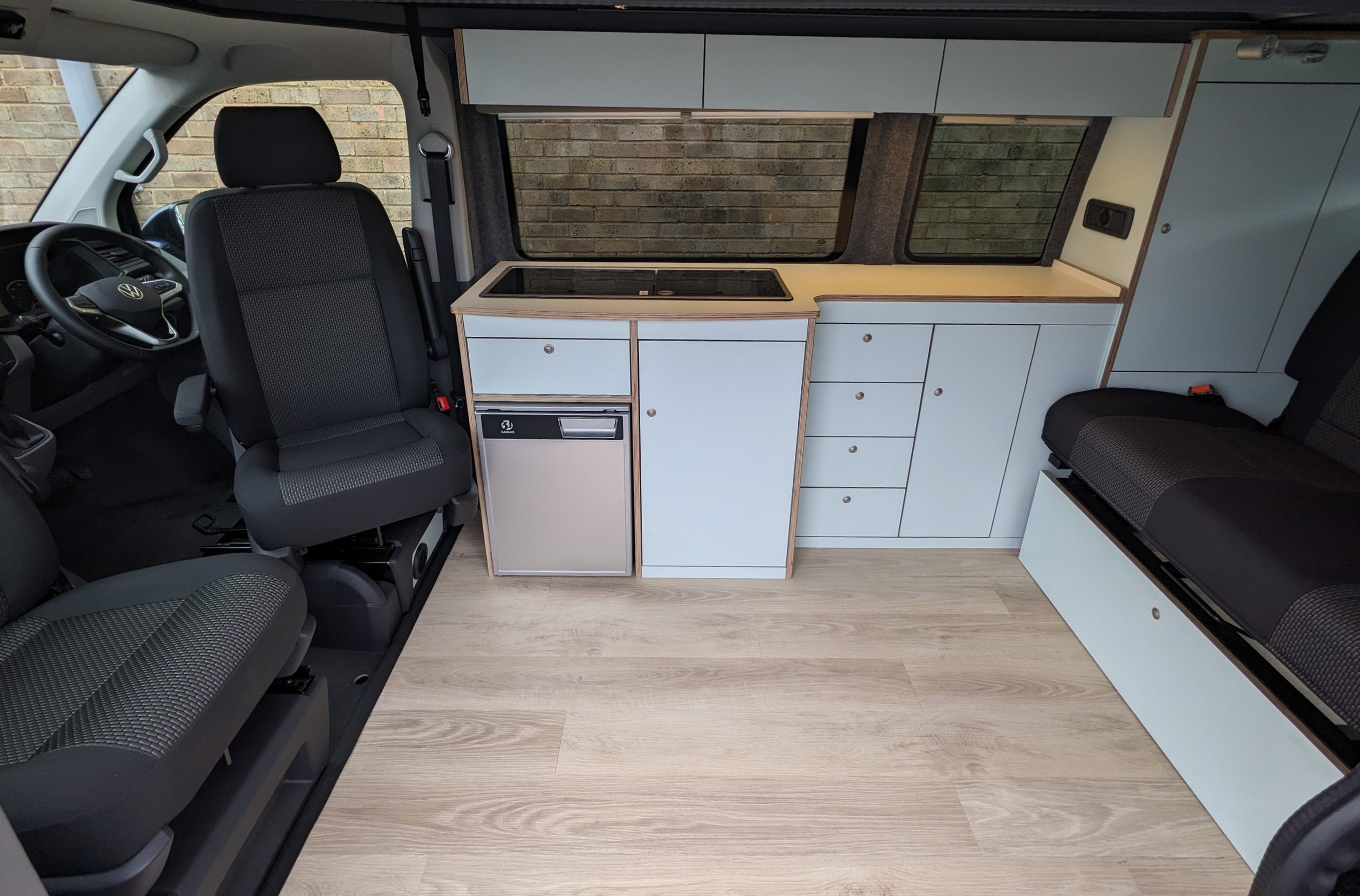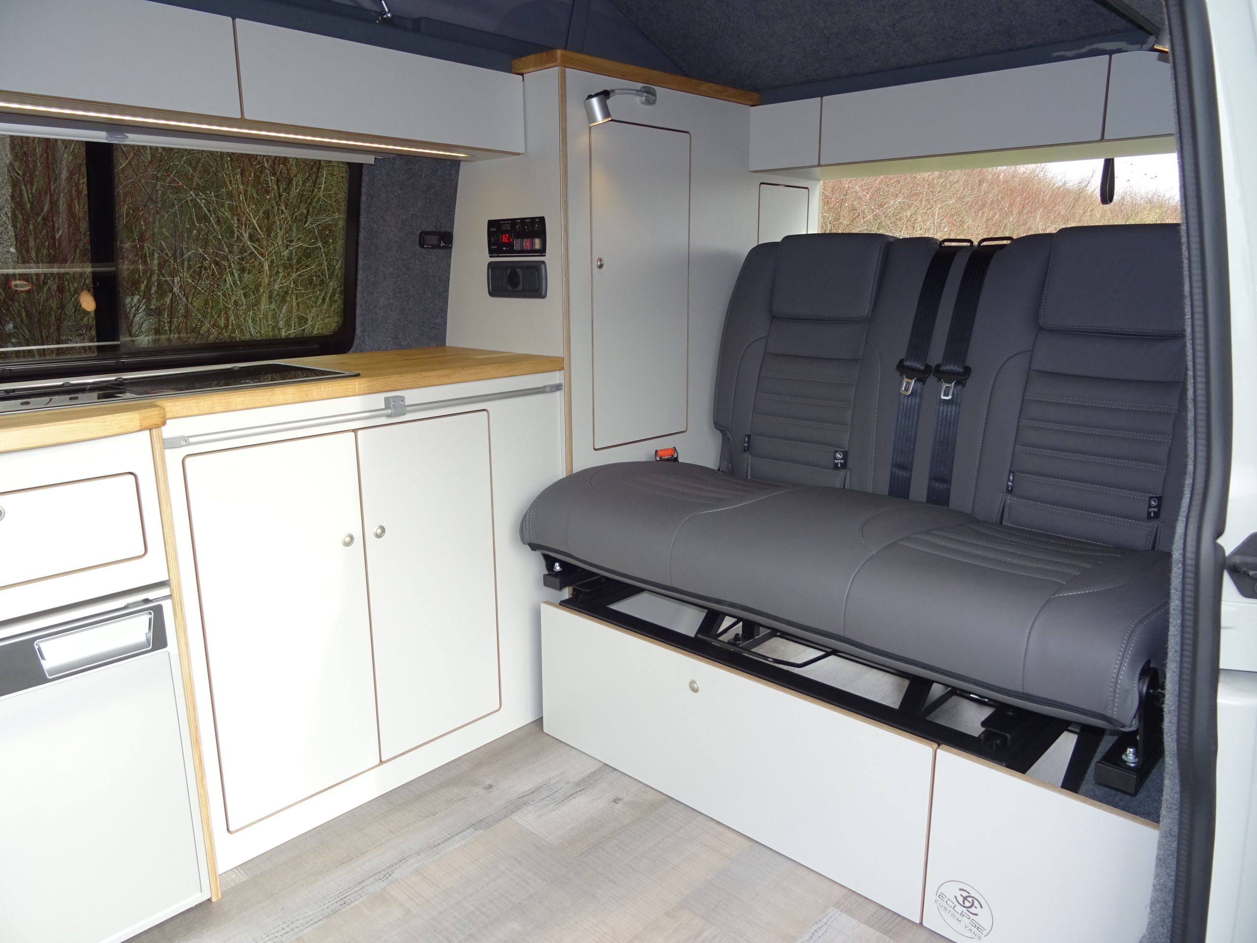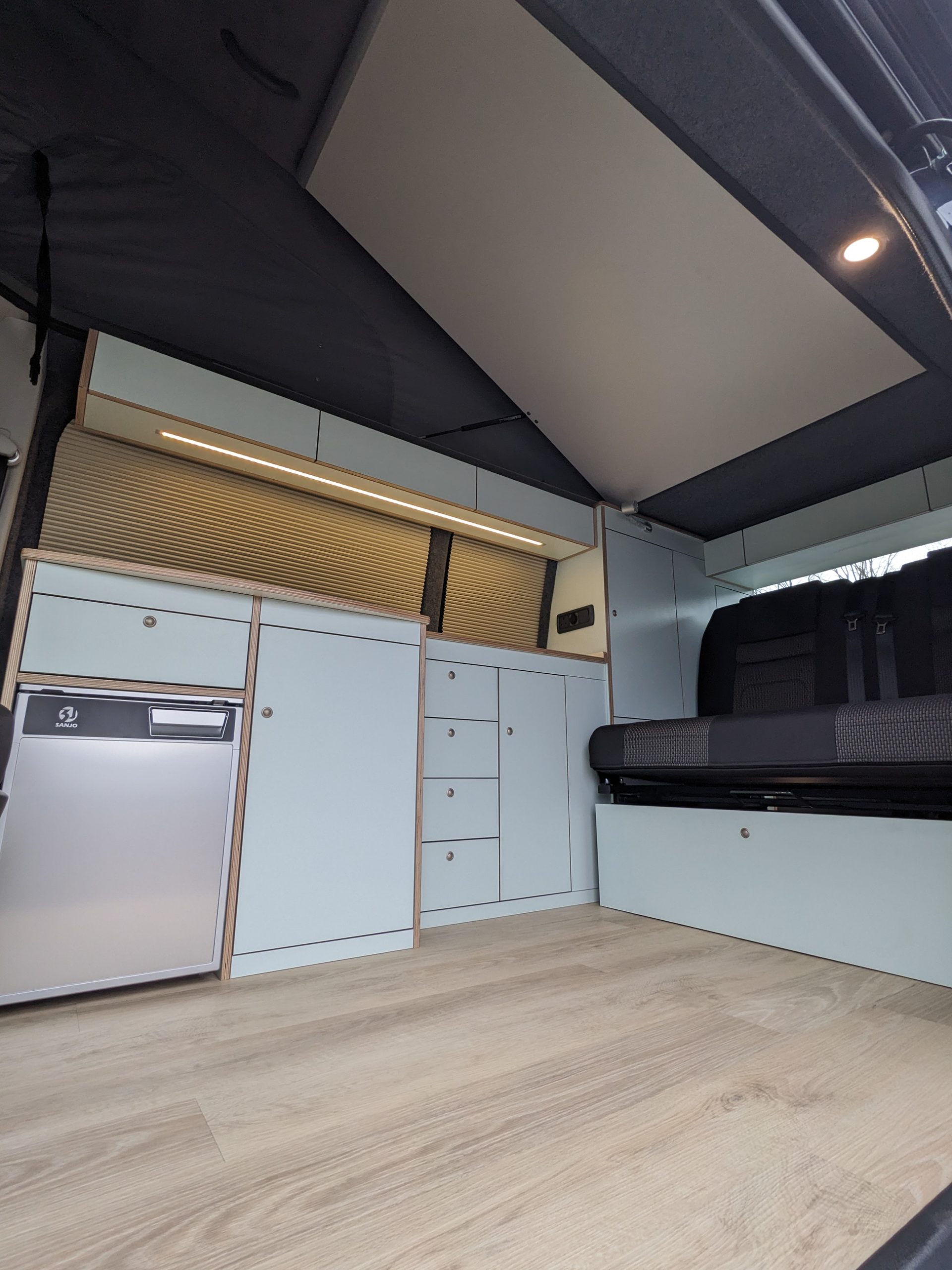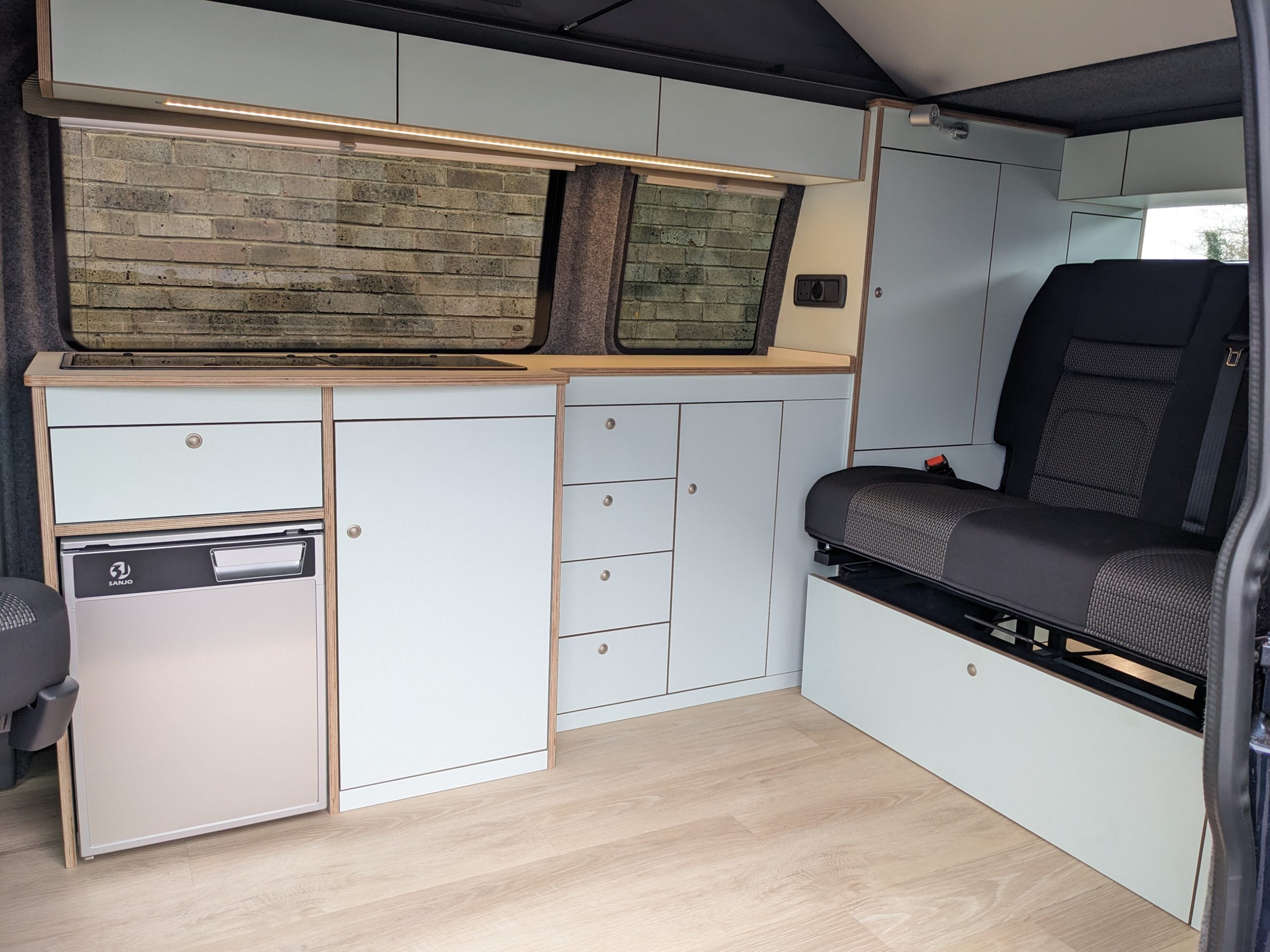 The Olympus, our most sought-after conversion, comes fully equipped with a sleek elevating roof that includes a double bed suitable for adults – boosting the sleeping capacity to a four/five-berth setup. As our most popular build, it comes complete with everything you need for comfortable, family-friendly adventures.