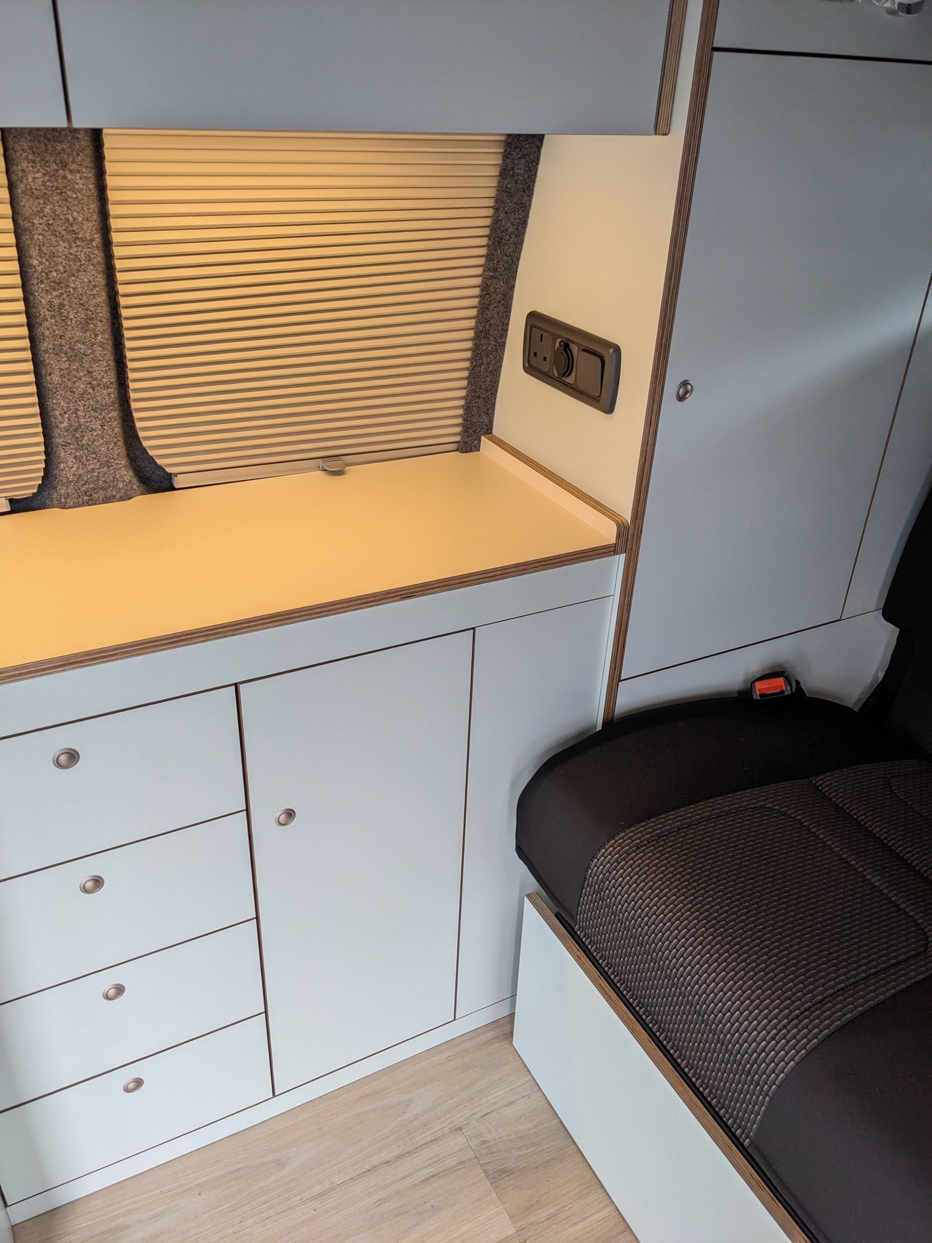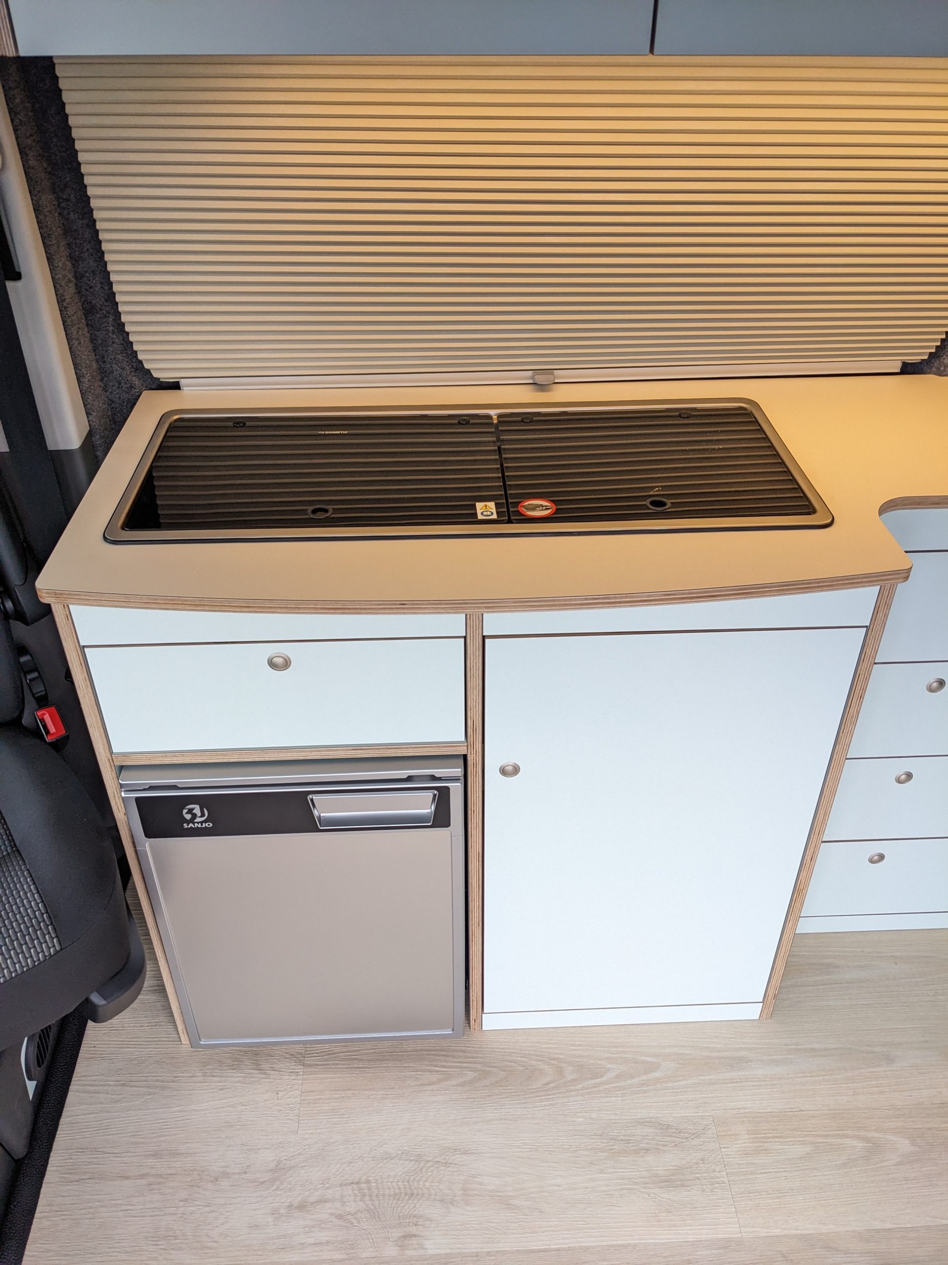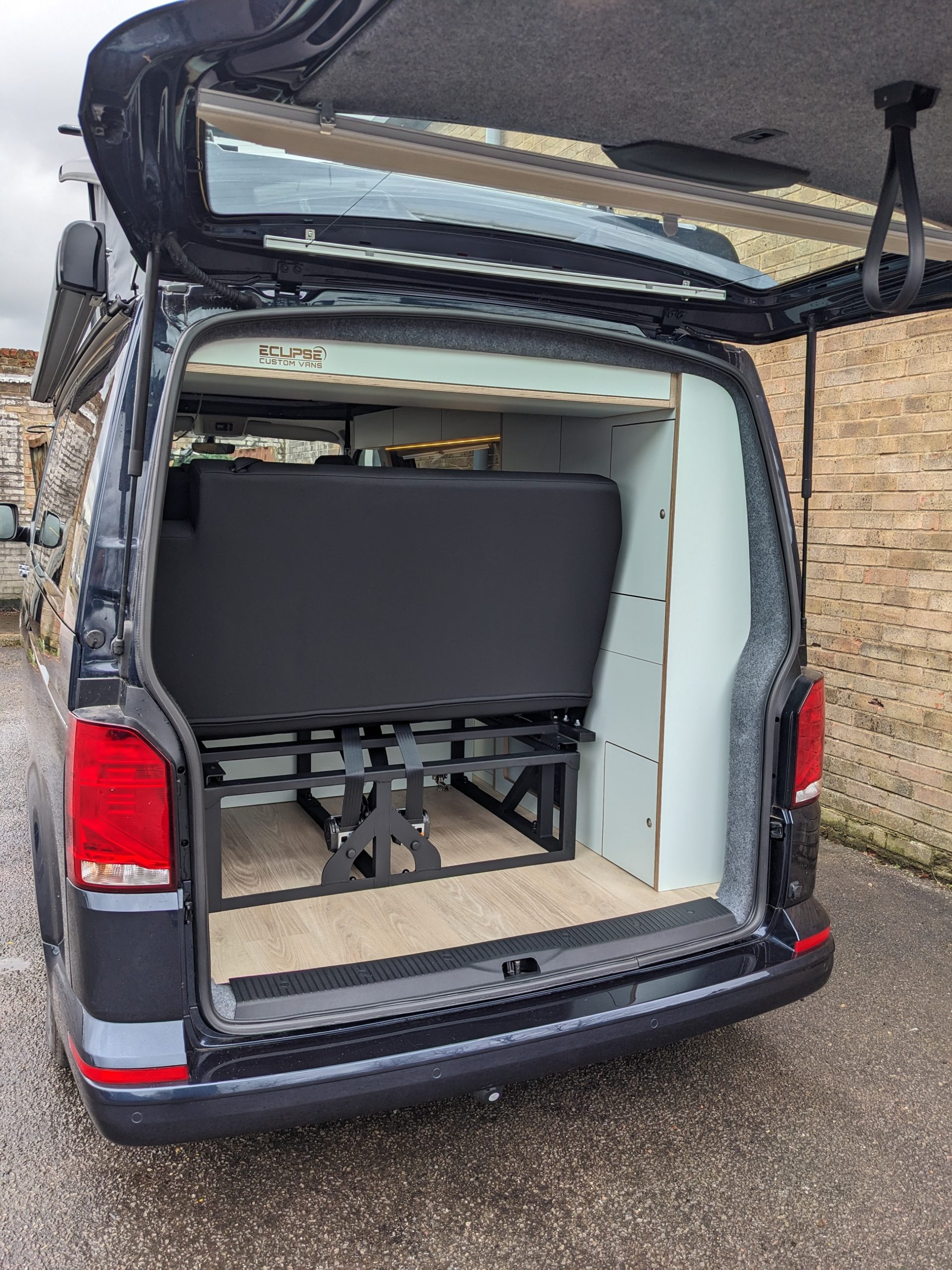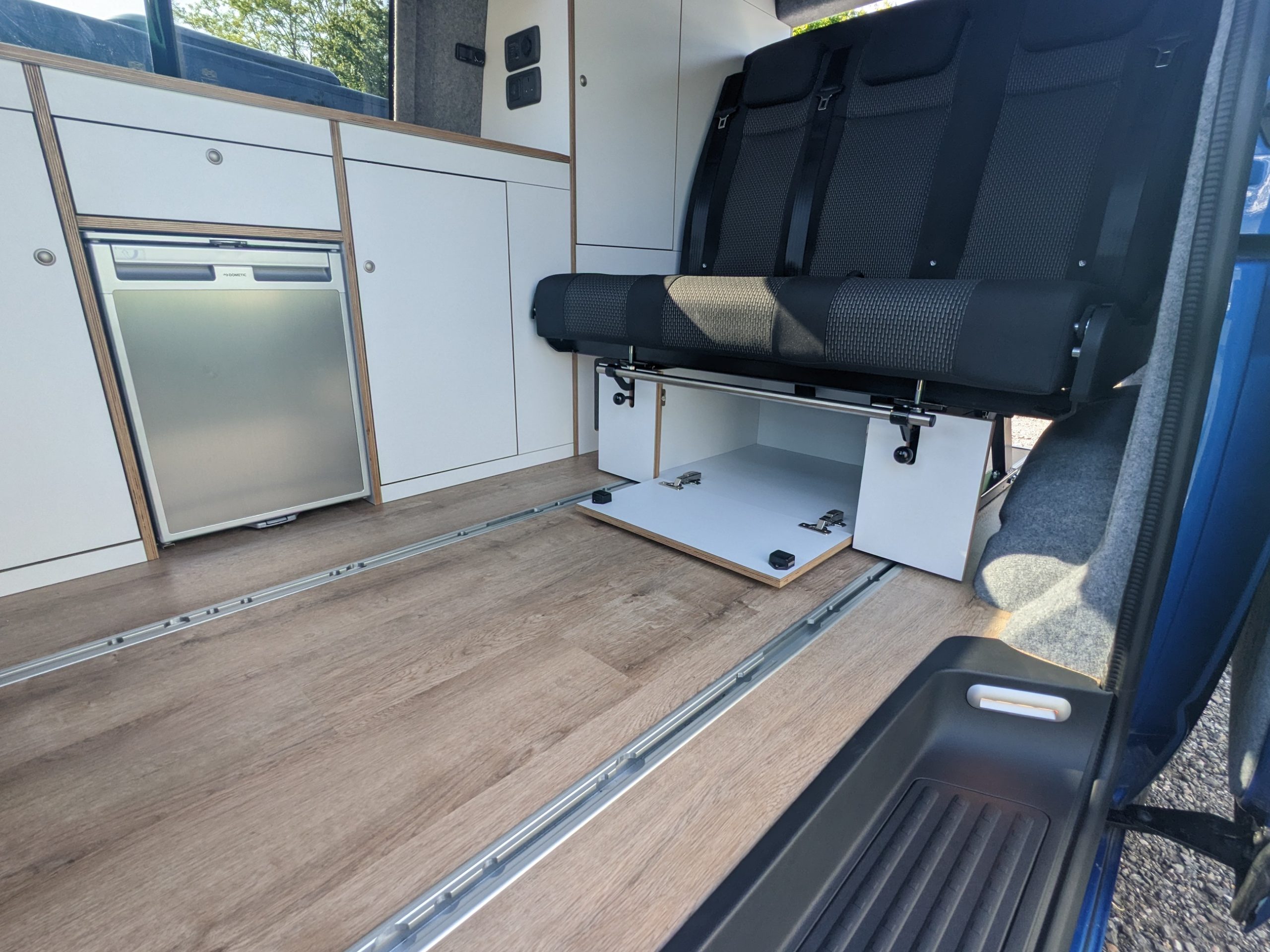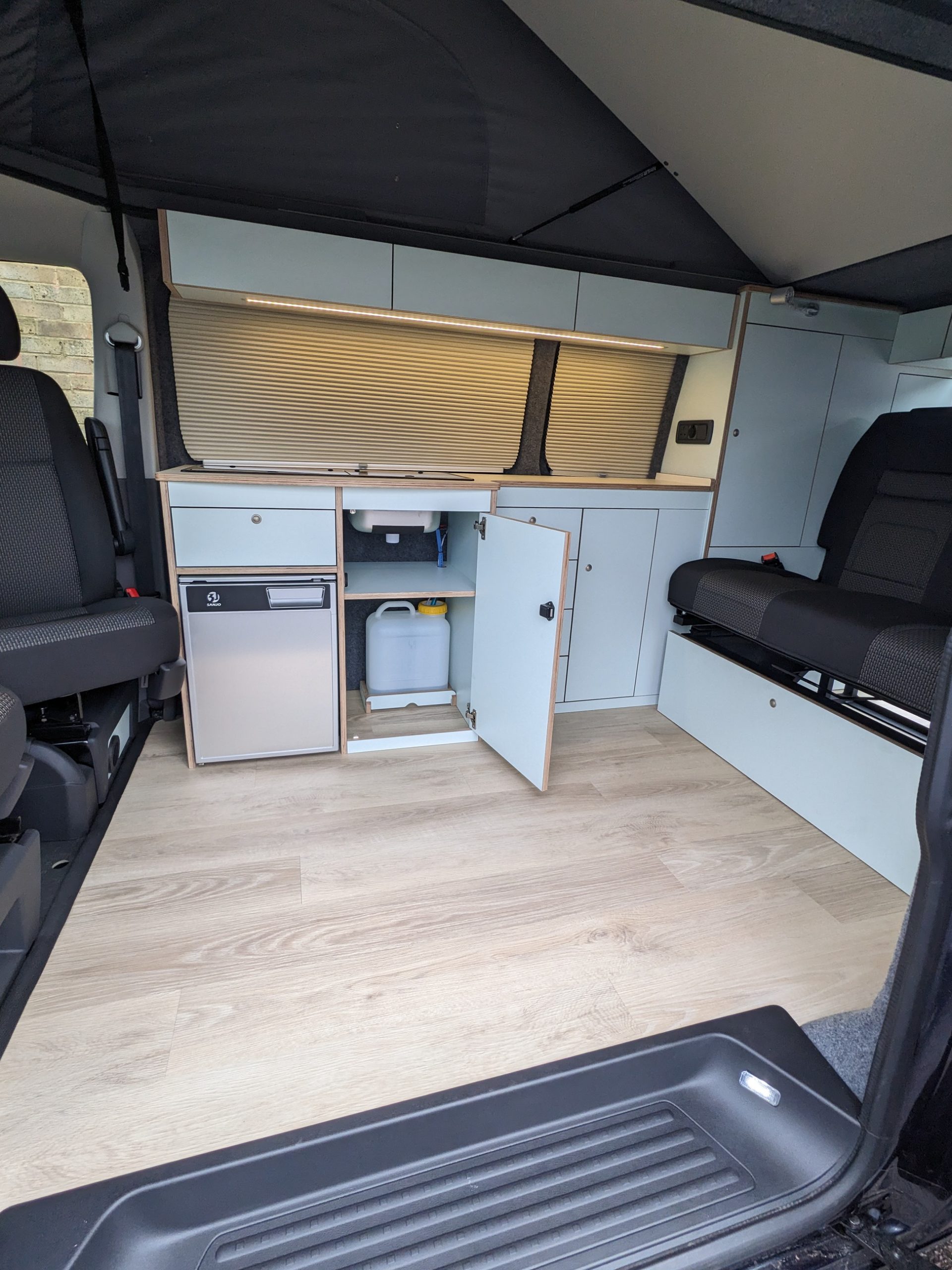 The Olympus, our most sought-after conversion, comes fully equipped with a sleek elevating roof that includes a double bed suitable for adults – boosting the sleeping capacity to a four/five-berth setup. As our most popular build, it comes complete with everything you need for comfortable, family-friendly adventures.