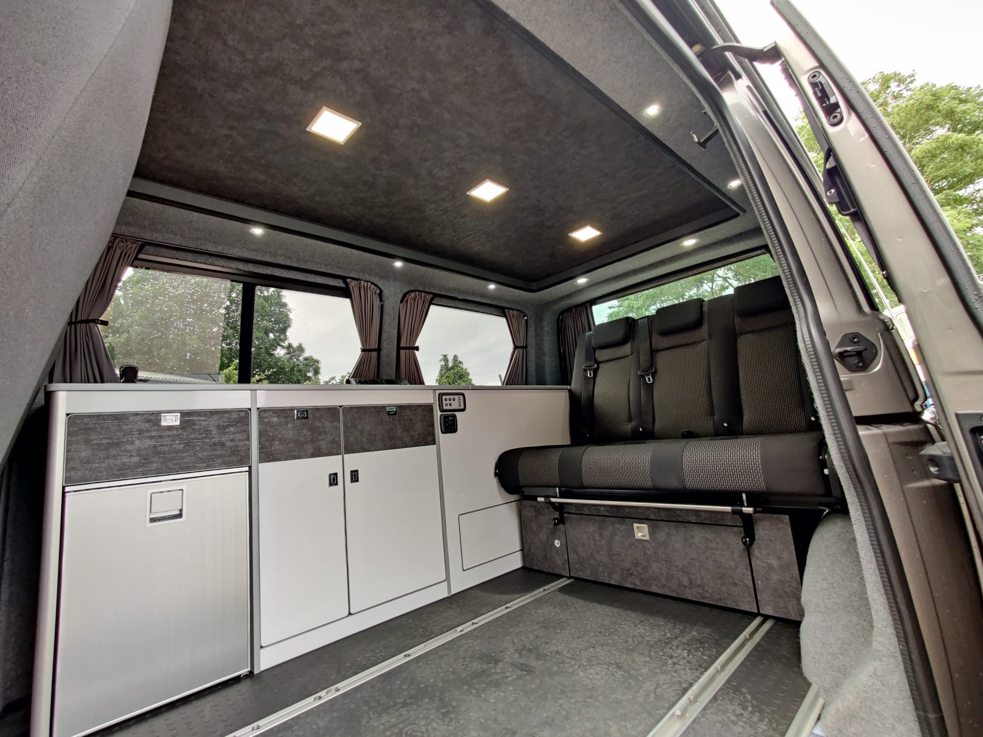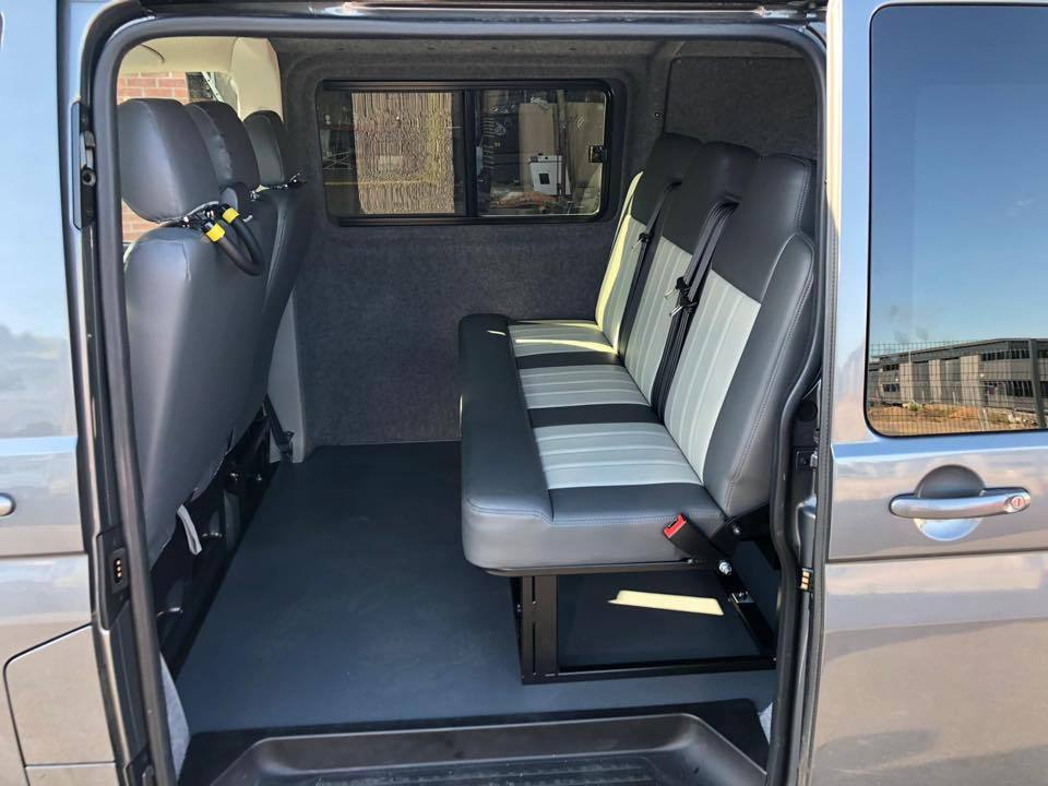The Transporter Kombi conversion has ample space for up to six people in standard configuration and 9 with the 3rd row added.Couple this with a generous load compartment and this becomes a formidable option for a family vehicle.We convert standard panel vans into KOMBI vans by adding the various seating configurations and any number of side windows as required.2 + 1 seats, triple and third row configurations are available. The standard durable upholstery is perfectly designed for heavy daily but we can provide a leather upgrade to fully individualise your van.All conversions come with factory seatbelts to all seats and the sound-absorbing rubber OEM flooring in the rear passenger compartment is easy on the knees and easy to wash.