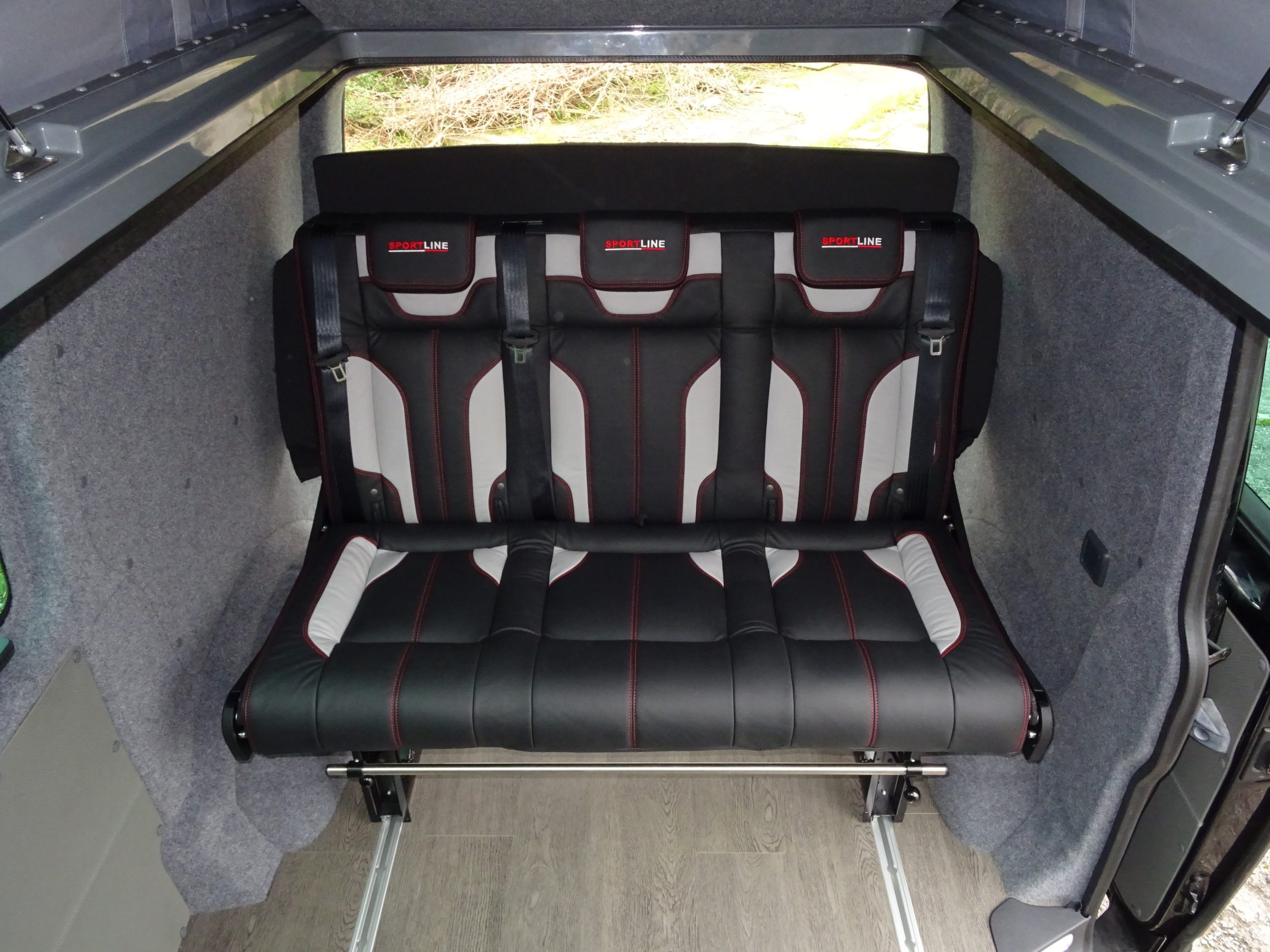 RIB Are quite possibly the most popular seat/bed systems available based on the quality, comfort and price. Available in 2 or 3 seat options, these beds are manufactured to order and imported from France. These are fixed position and non removable systems.The RIB Altair model is the seat we would typically use within our conversions. It is fully ccertified and provides 2 to 3 seating positions with integral 3 point seat belts to each position. The front and rear sections of this bed can lock in a number of angled positions increasing its flexibility.Woith this bed, you sleep on the reverse of the seat area.The seat is contoured while the rear sleeing section is flat.