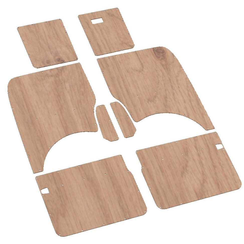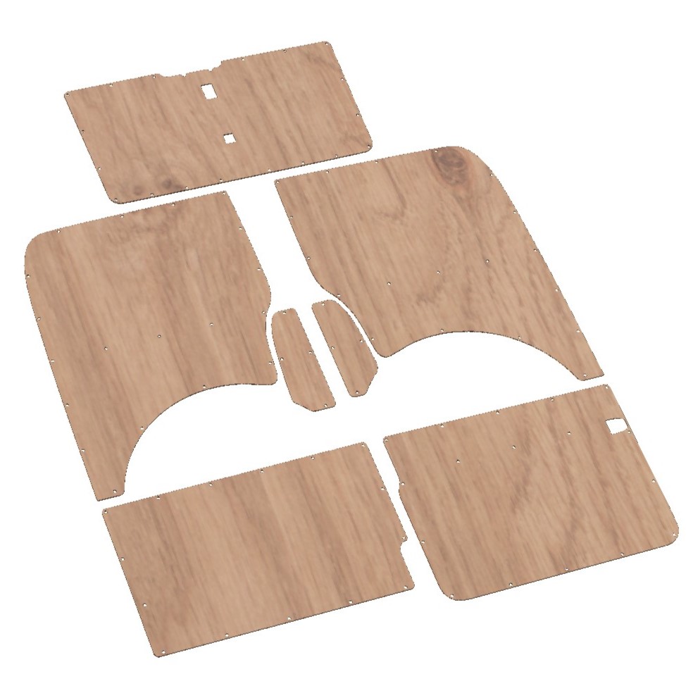 Please note: these panels are supplied as a bare ply kit only – you’ll need to carpet or suede line them yourself. Trim materials and adhesives are available separately in our shop.