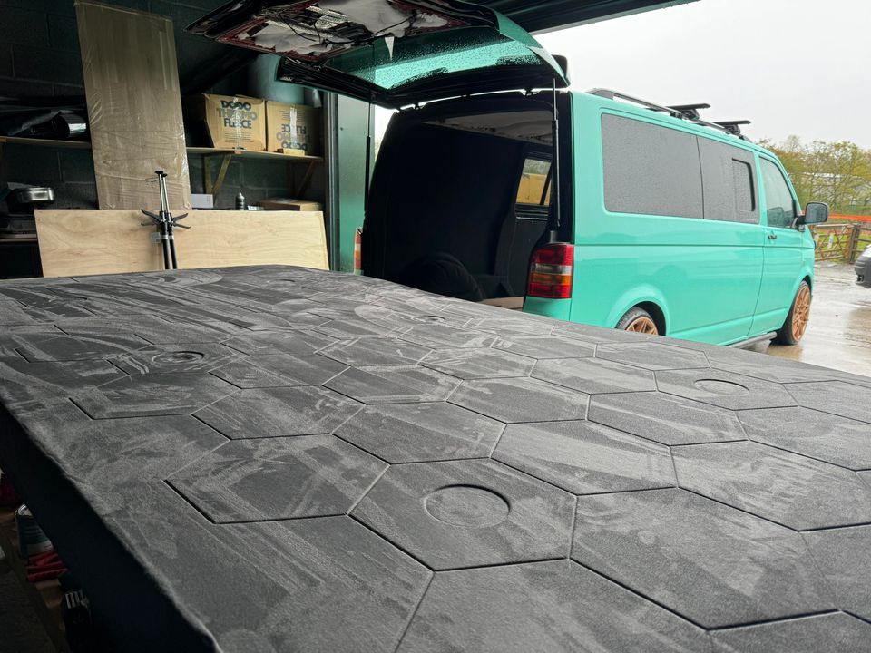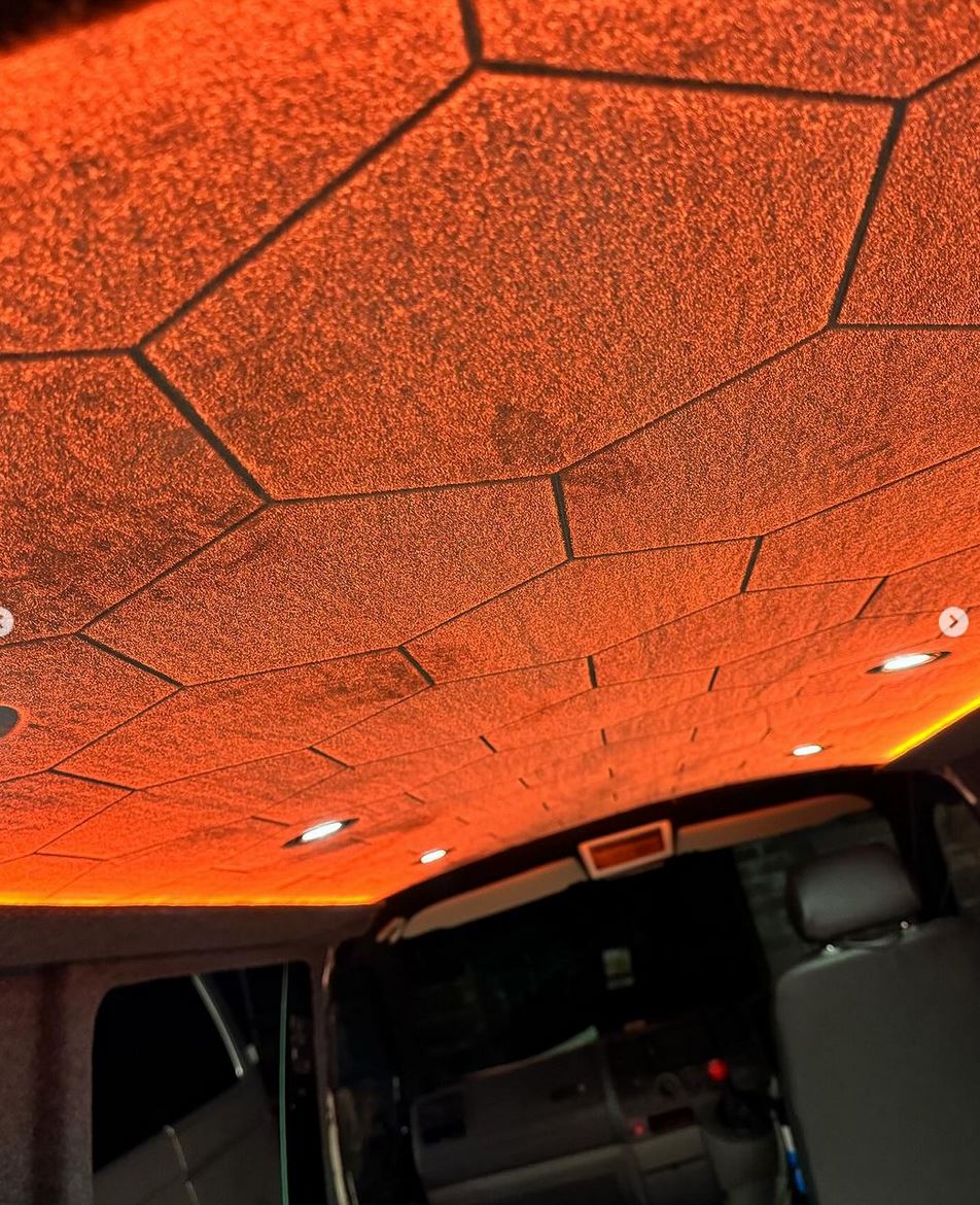 Our Halo roof kits are designed to replace your van’s standard OEM ceiling panels, adding both style and functionality. Each kit features an external ‘Halo’ trim wher a LED strip is fited to cast a soft, ambient glow across the ceiling—creating a stunning lighting effect. They’re engineered to fit perfectly using the factory roof mounting points, so there’s no need for any drilling—just a seamless, hassle-free upgrade. They are avialbe in plain or patterned finish with or without speaker kits.